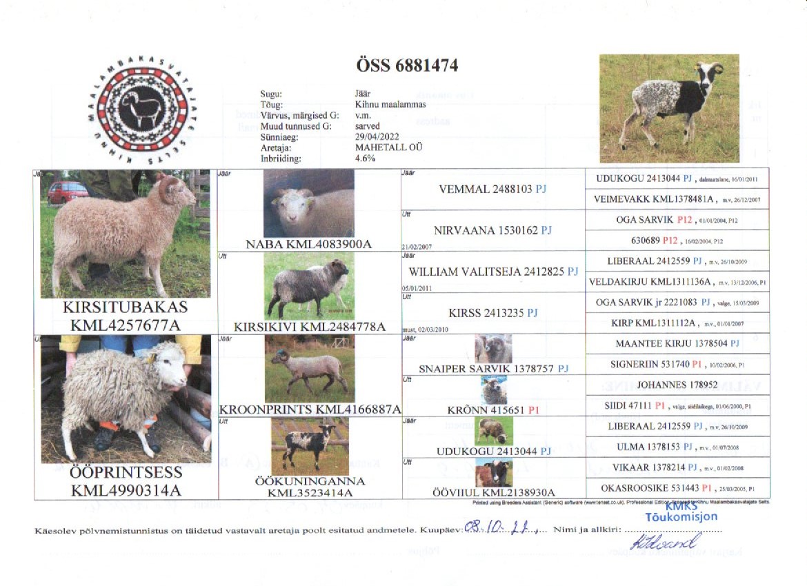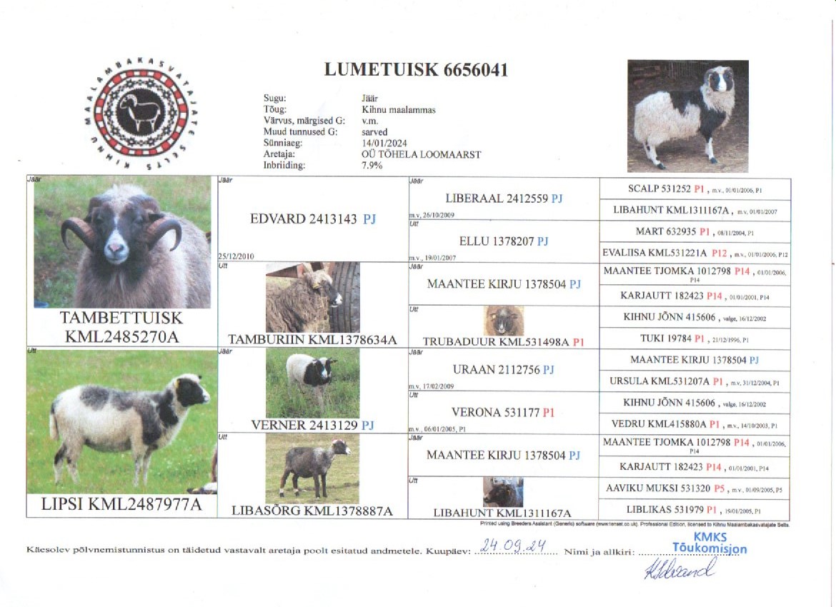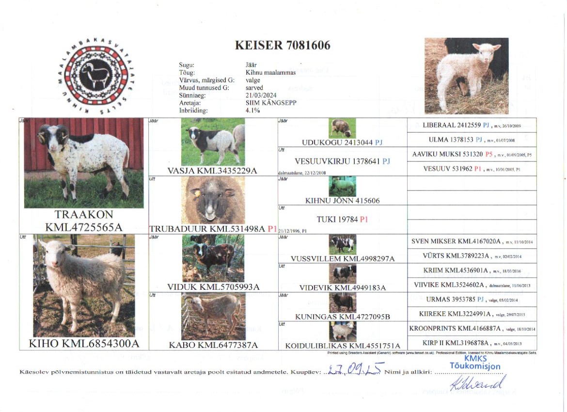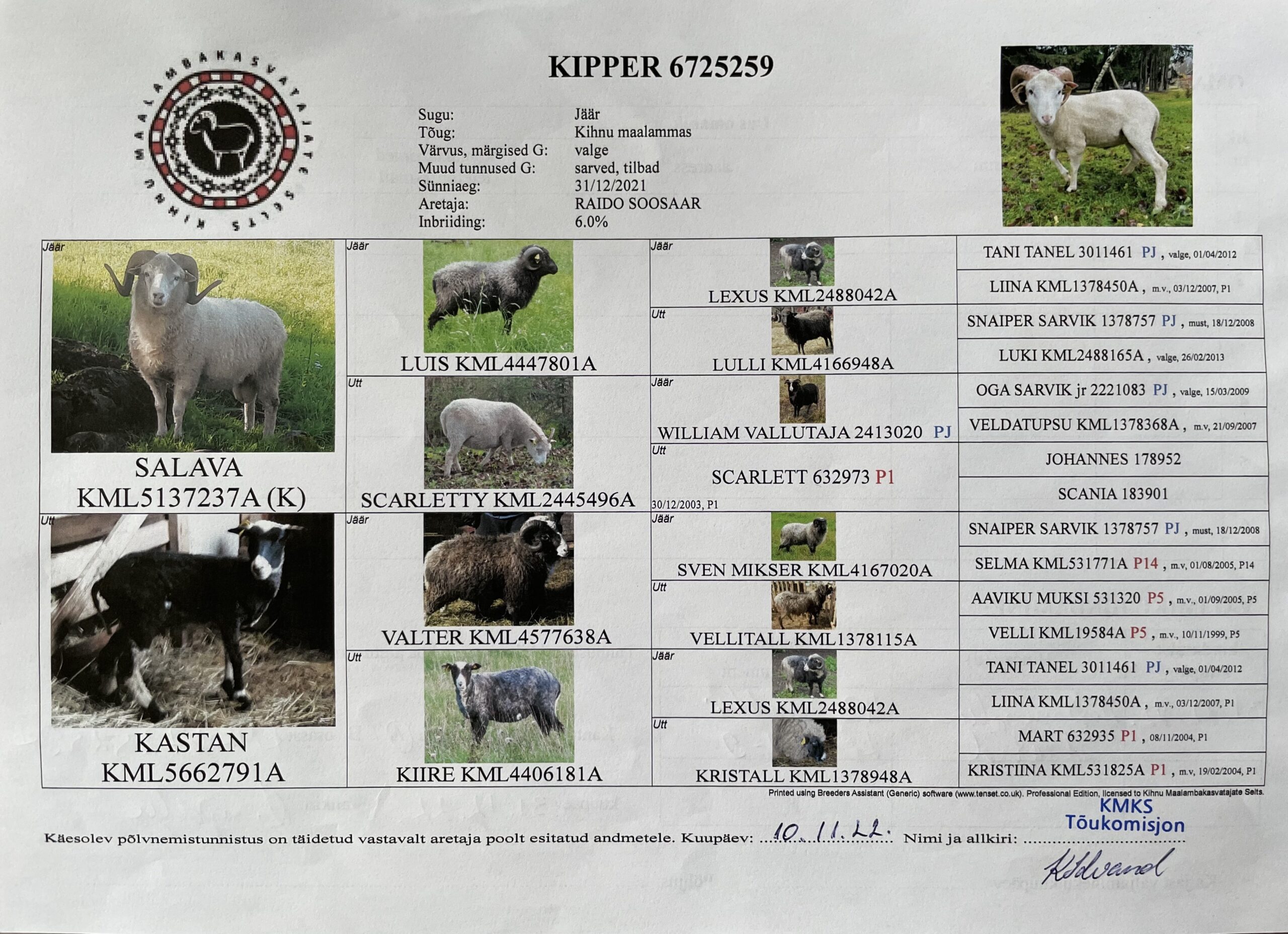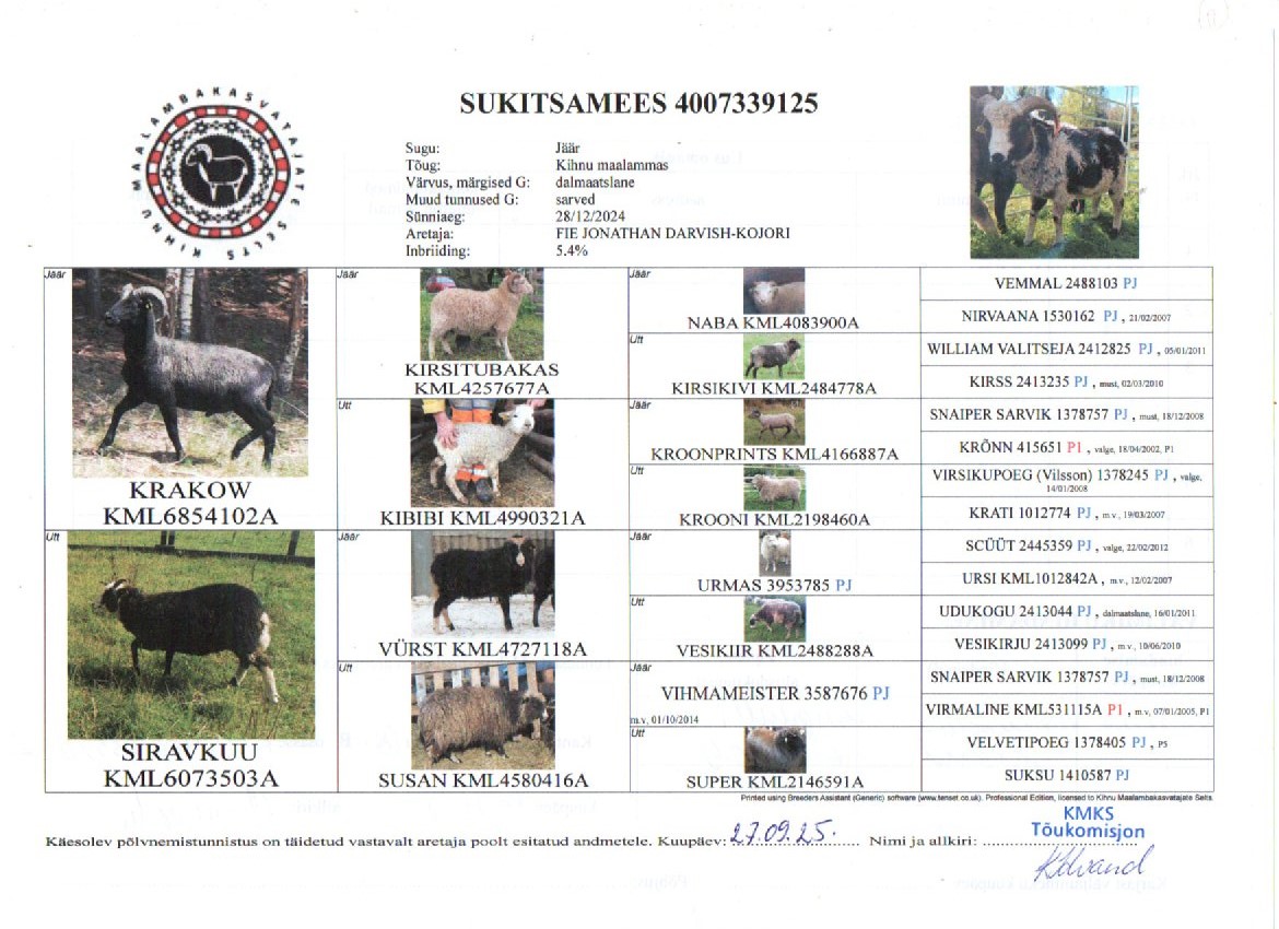 NB! Täpsemat infot KML tõuraamatu jäärade kasutamise jm küsimuste korral saab kmkstoukomisjon@gmail.com.